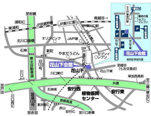 浦和ICより国道122号線を東京方面 へ向かい、石神交差点を左折。
